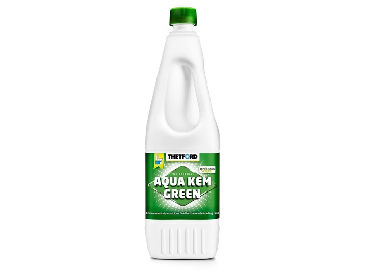 Для догляду за біотуалетами використовують спеціалізовані засоби. Подібні добавки сприяють дезінфекції, переробці відходів і зниженню газоутворення. Серед них слід виділити Aqua Kem Green від THETFORD. Санітарна рідина розроблена спеціально для нижнього бака біотуалету, а також накопичувального бака біотуалетів-кабінок.
